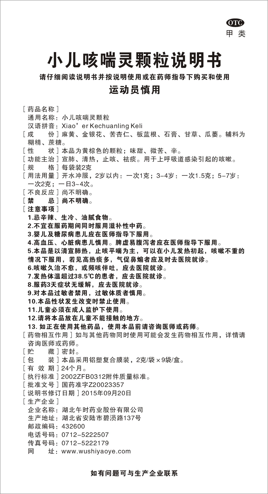 麻黃、金銀花、苦杏仁、板藍(lán)根、石膏、甘草、瓜蔞。輔料為 糊精、蔗糖。