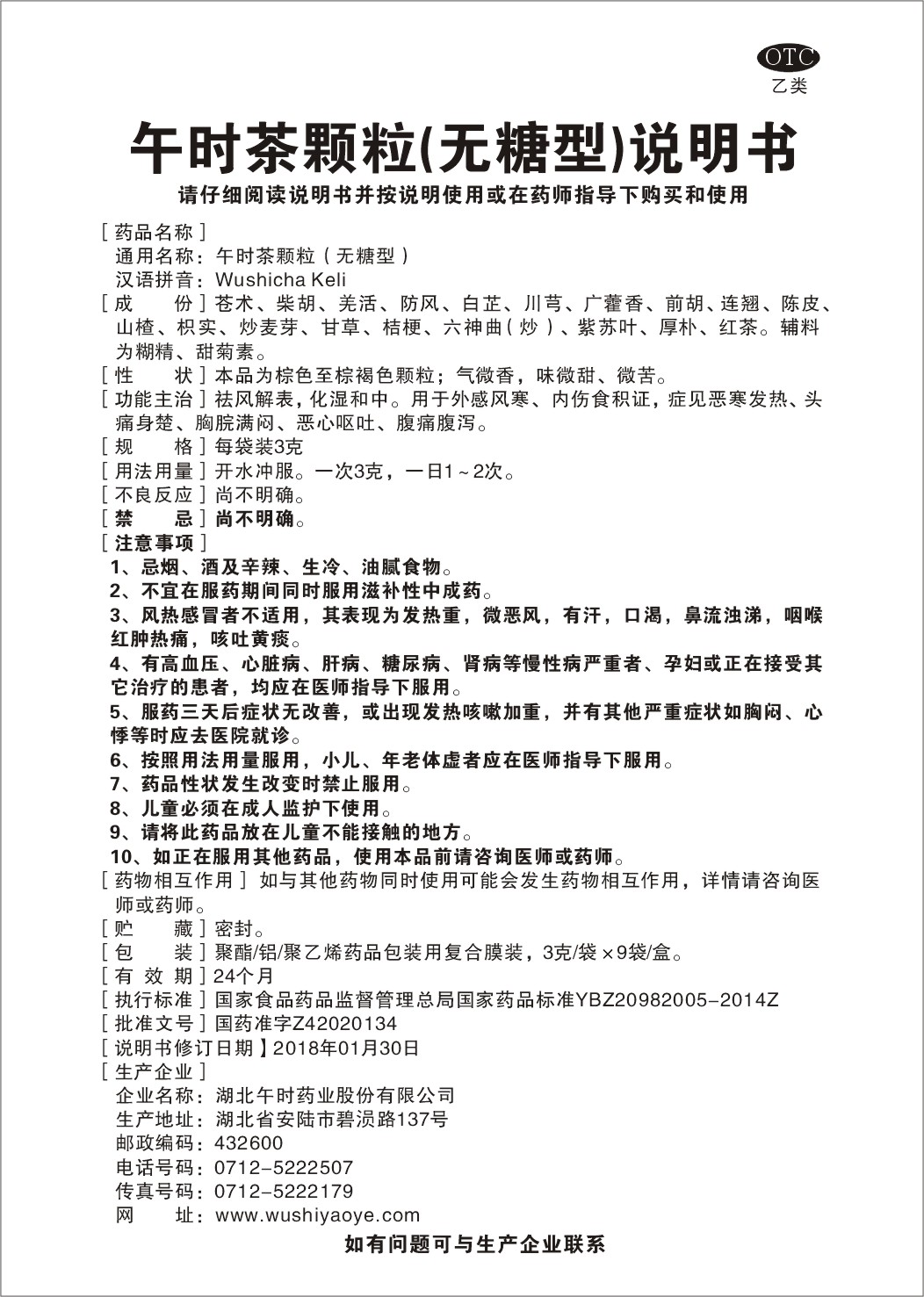 通用名稱:小胃病午時(shí)茶顆粒(無糖型)